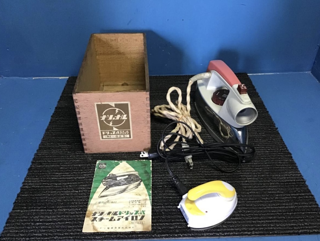 *◆2点セット ナショナル ドリップ式 スチーム アイロン NI-62S レトロ 昭和 通電OK ミニアイロン(DMA-04)ドウシシャ 岐阜発 4/19