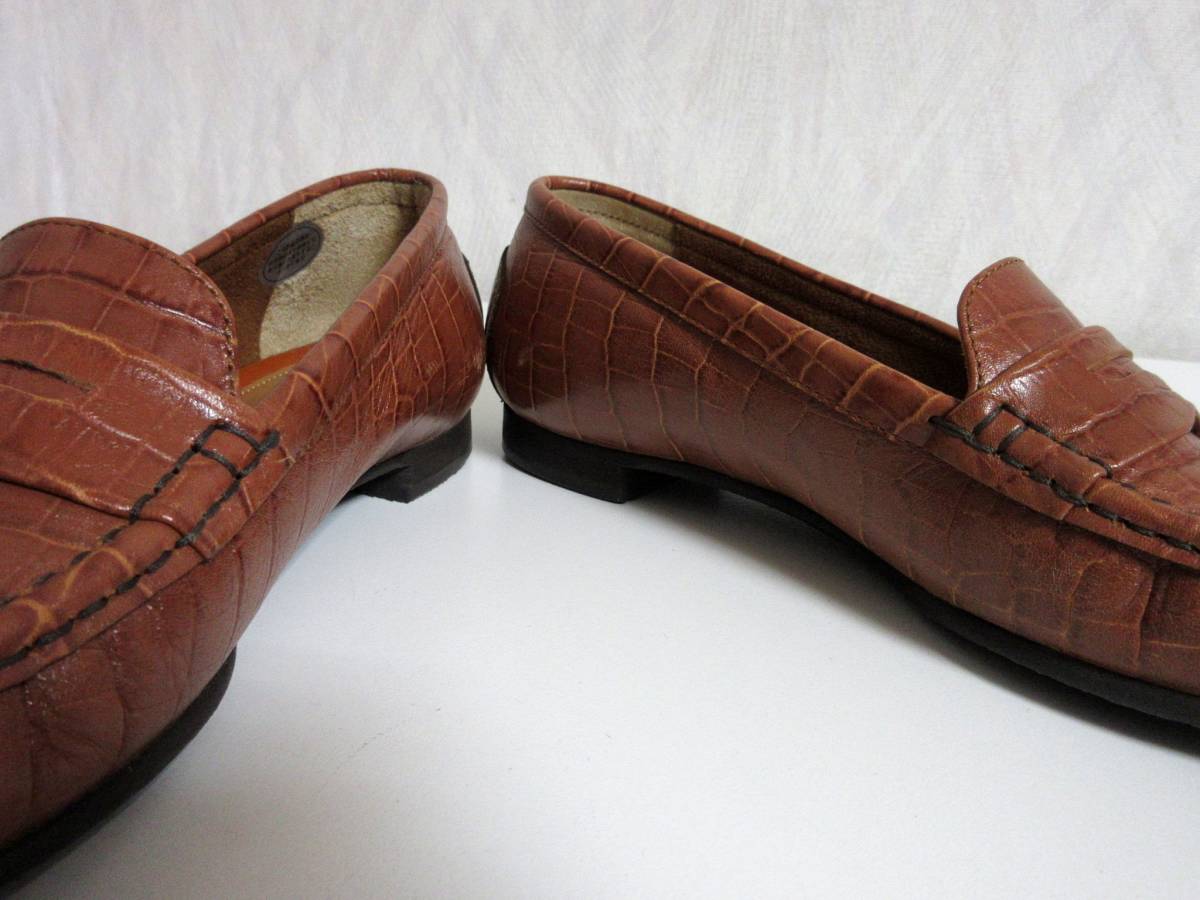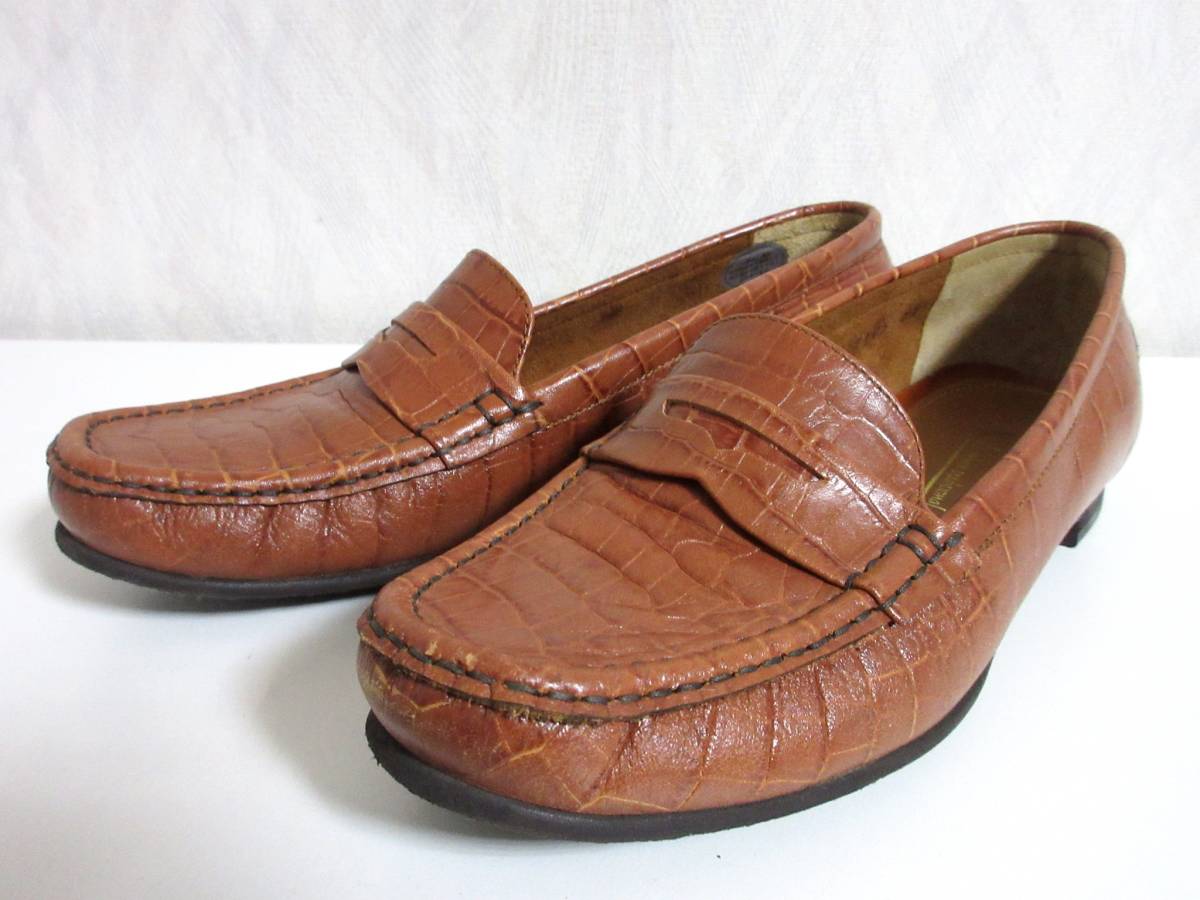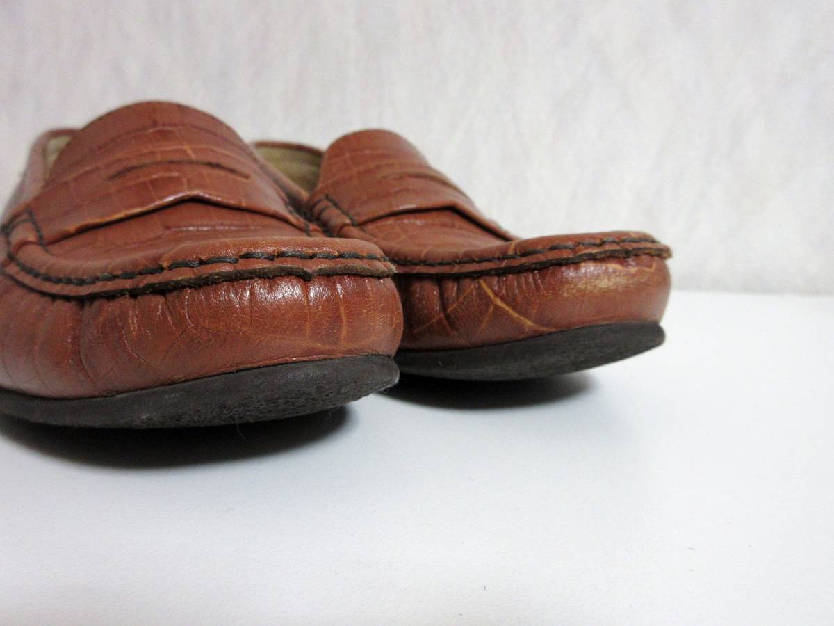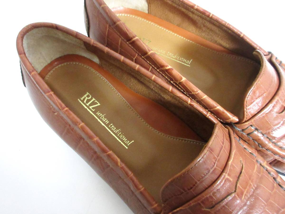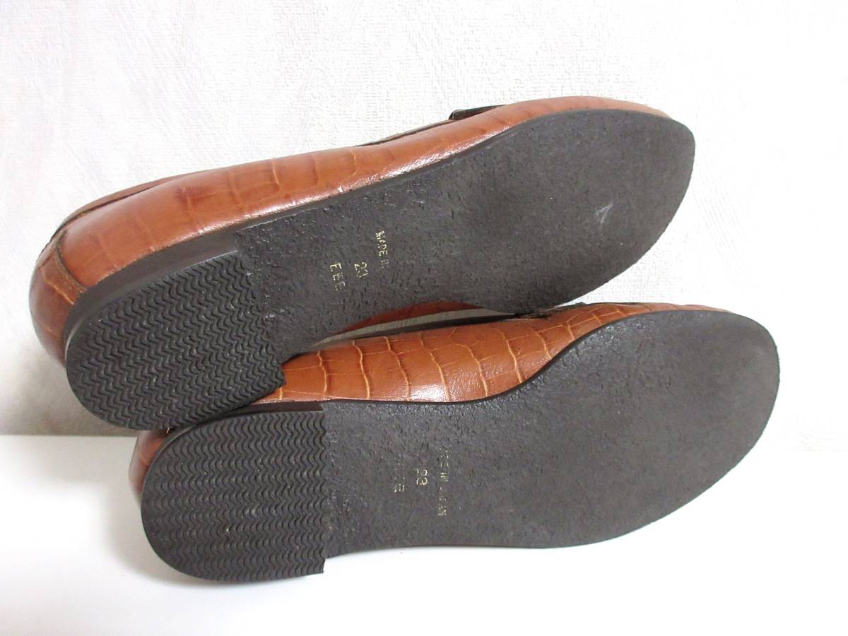 リズ RIZ 型押し レザー ローファー 茶 ブラウン 23EEE 北4454