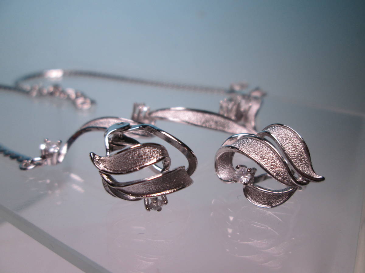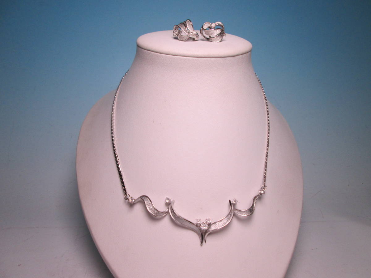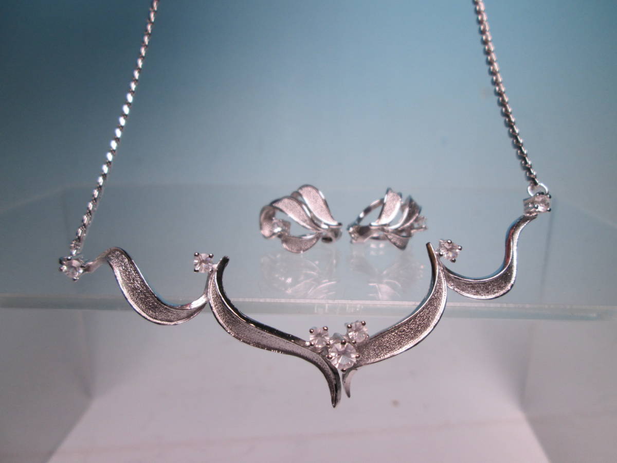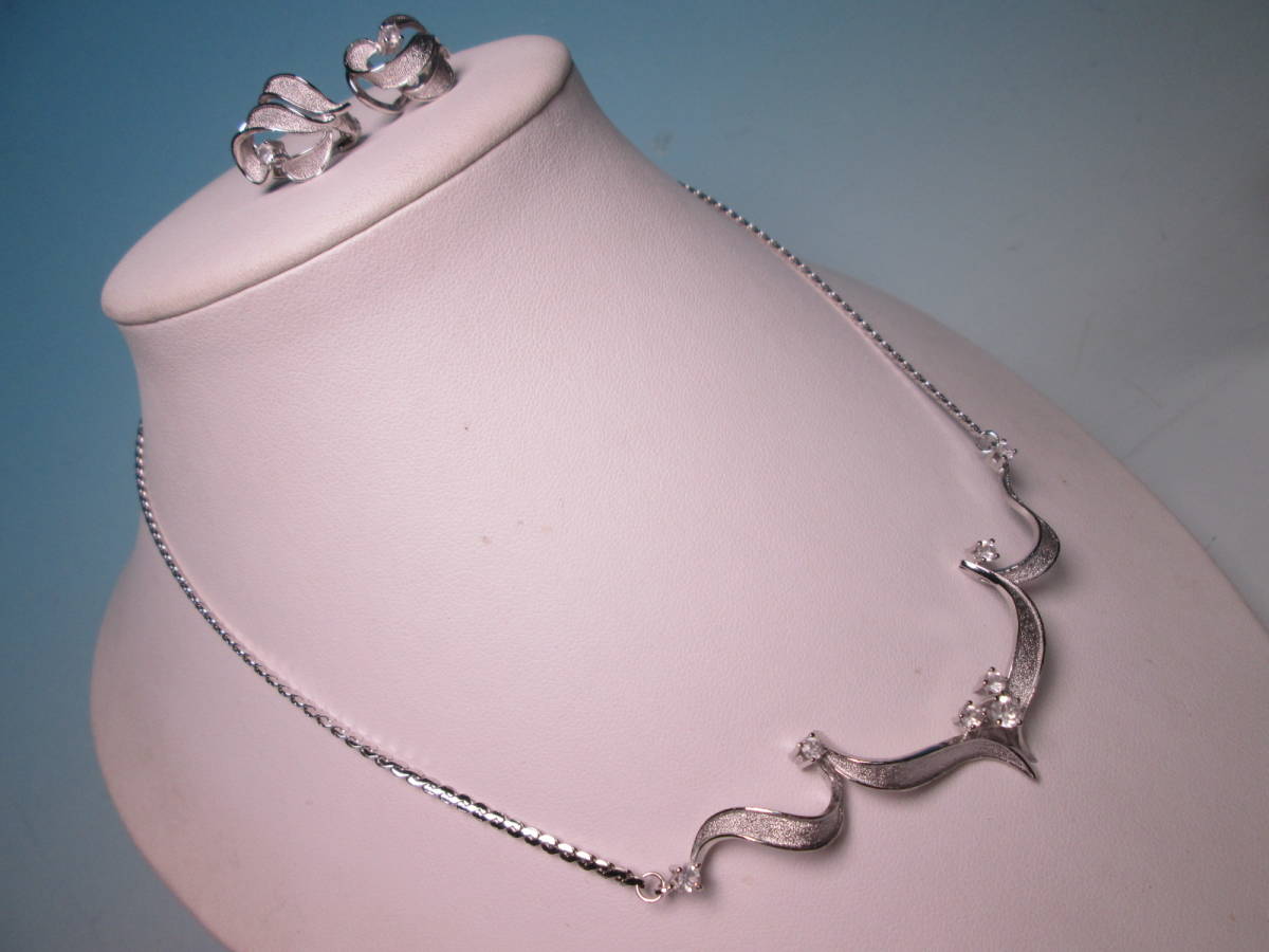 ☆SILVER ラインストーンデザインネックレス&イヤリングセット ケース付