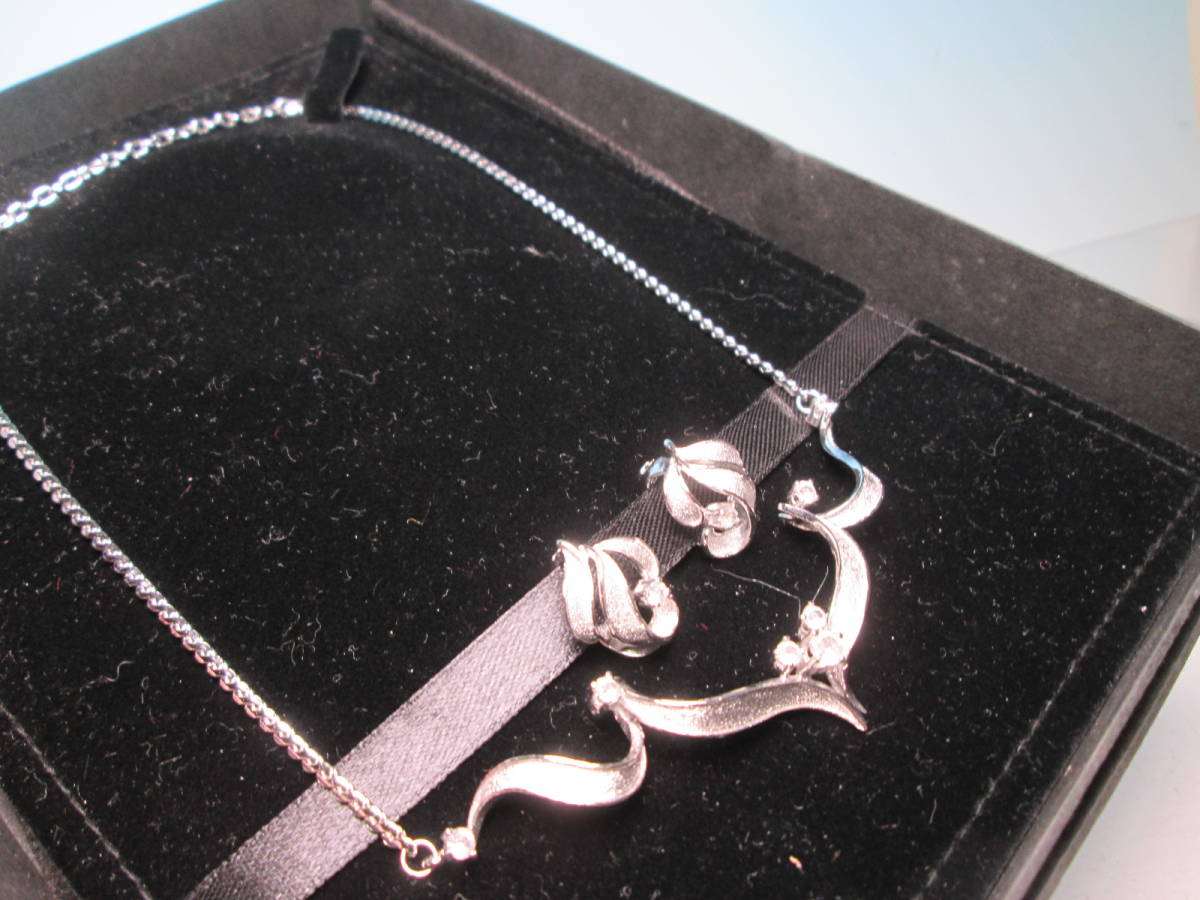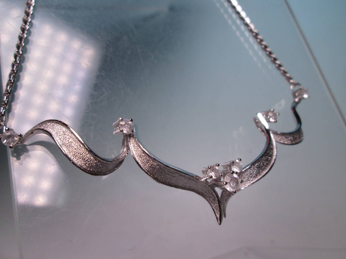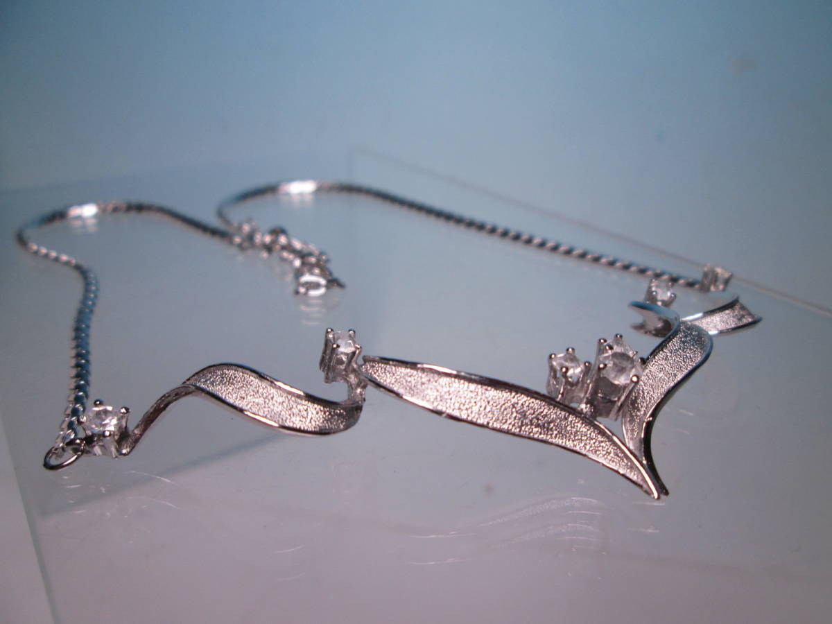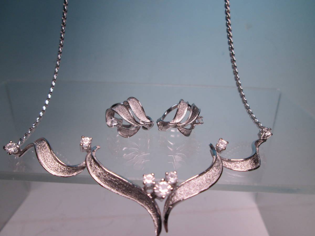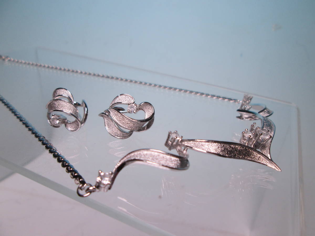 ☆SILVER ラインストーンデザインネックレス&イヤリングセット ケース付