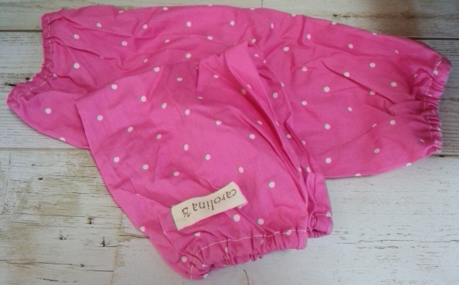 ピンク水玉柄も楽しい春らしいハンドメイドアームカバーのご紹介です。