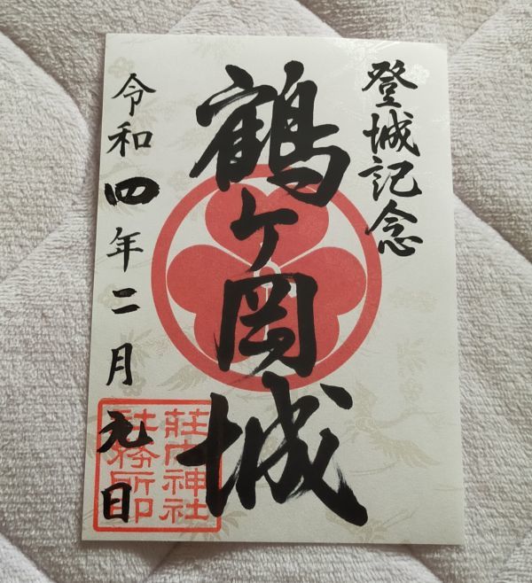 ◆荘内神社(山形・鶴岡)◆御城印(御朱印)「鶴ヶ岡城」 令和4年(2022年)2月 |