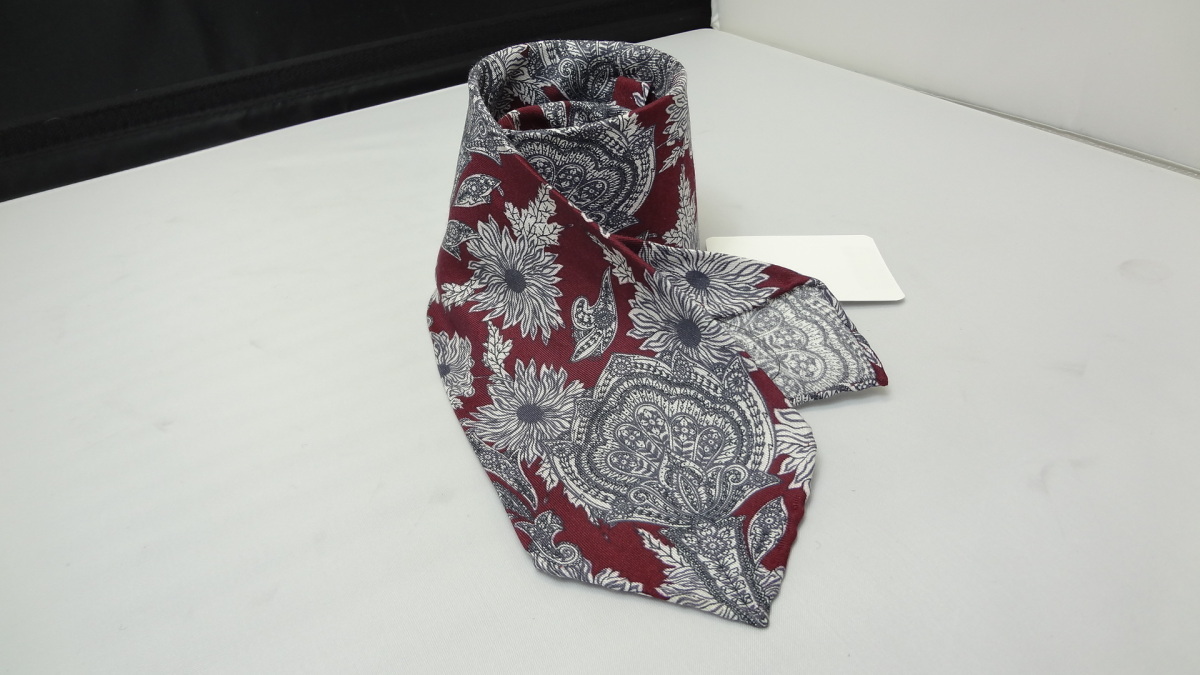 イタリア製のシルク50%、コットン50%のプリントネクタイ。