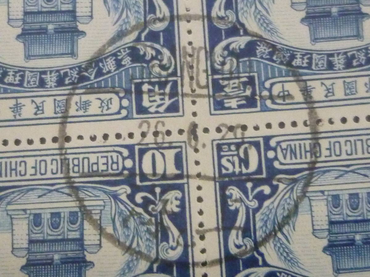 22 P 旧中国 中華民国切手 1929年 #347 総理国葬 孫文陵 10c 田型 印影大美消 消印「上海」