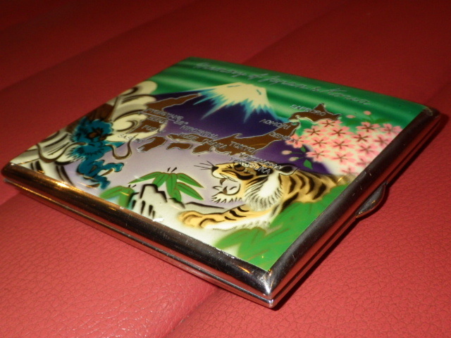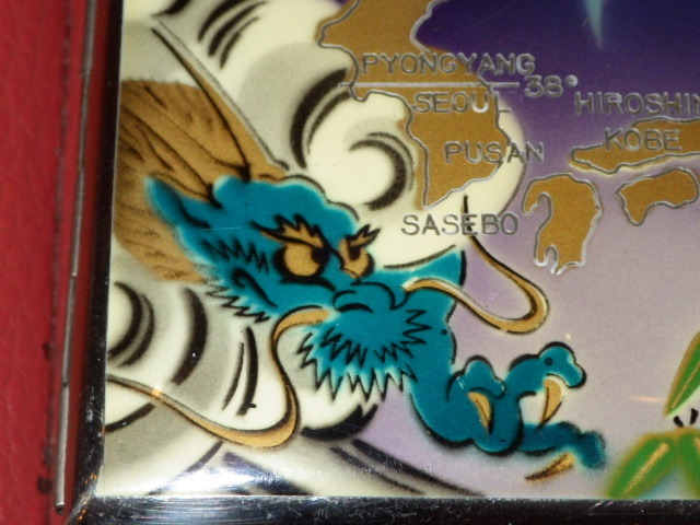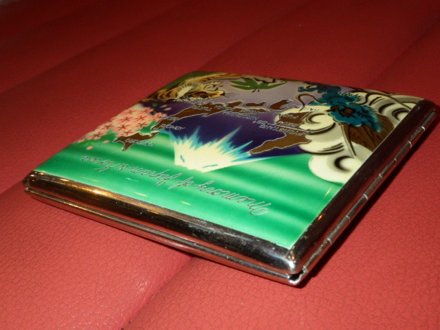 1945年以降の日本では占領軍兵用にスカジャン等、日本をイメージさせる図柄が入った数多くのスーベニアアイテムが作られており、アメリカ本国へ好んで持ち帰られておりました、こちらはその当時にアメリカに持ち帰られたシガレットケースの里帰り品になります♪
