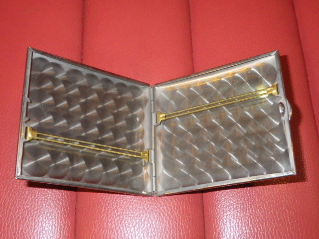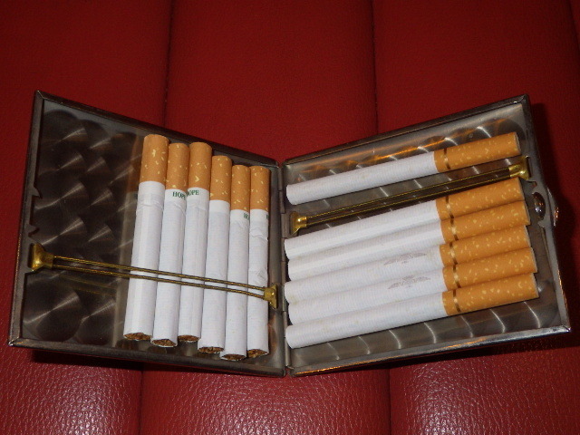 元々は、当時のショートタイプのタバコ用のケースですが、向きを変えると画像のようにロングタイプのものも収納可能です、ショートタイプのタバコはもちろん、最近は手巻きのタバコを愛用する方も増えておりますが、巻きタバコ用にもちょうど良いサイズ感です♪