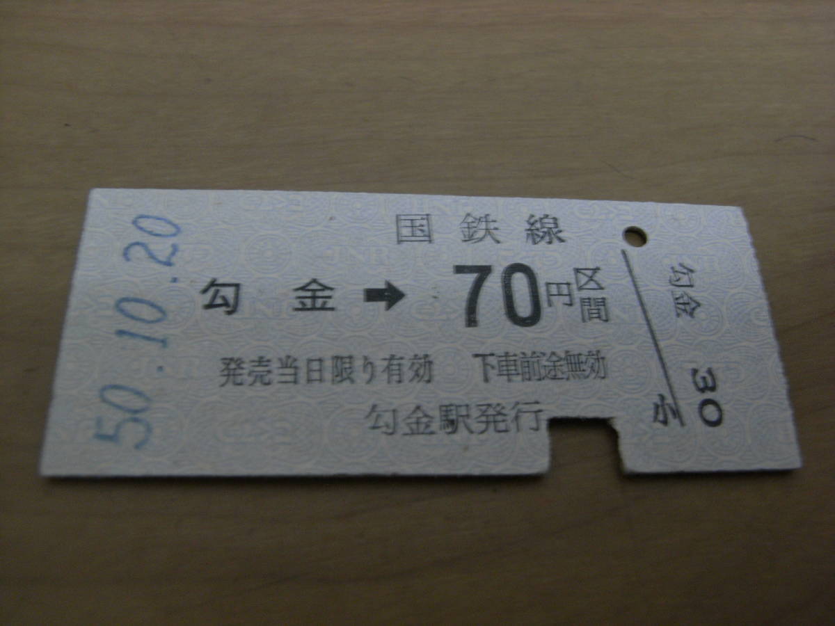 田川線 勾金→国鉄線70円区間 昭和50年10月20日 勾金駅発行