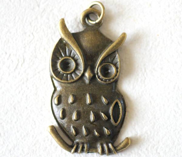 ■即決■鳥 やや大きめフクロウ 枝にとまった梟・メタルチャーム