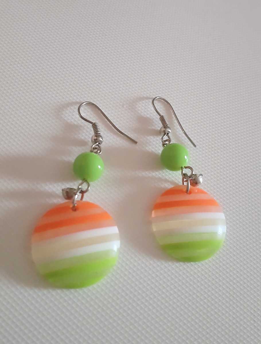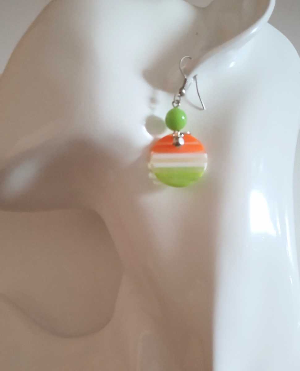 こちらは、ライトグリーン ホワイト オレンジ フックピアス になります♪