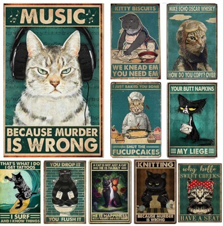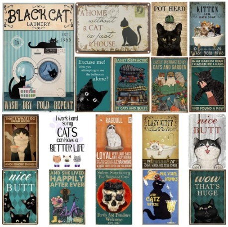 A2047 メタル サイン ブリキ 看板 金属 プレート 店 トイレ 男 女 トイレット ペーパー 補充 ペット 動物 茶 トラ 猫【24