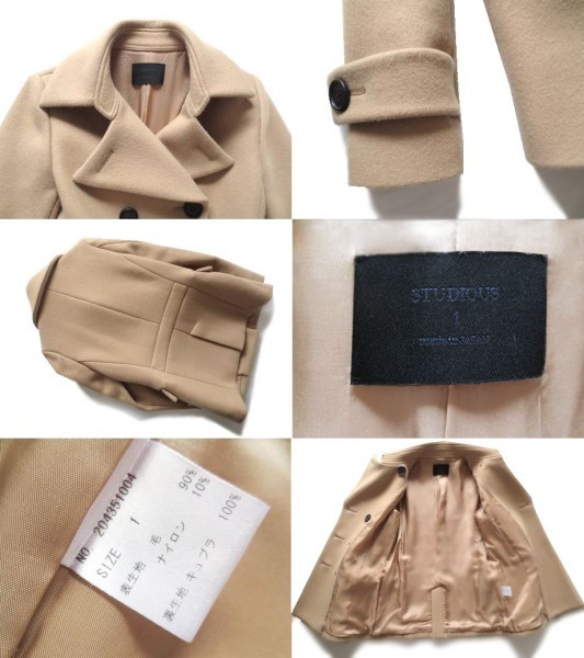 定価3.4万 STUDIOUS ステュディオス レディース ウール メルトン Pコート 1 キャメル 日本製