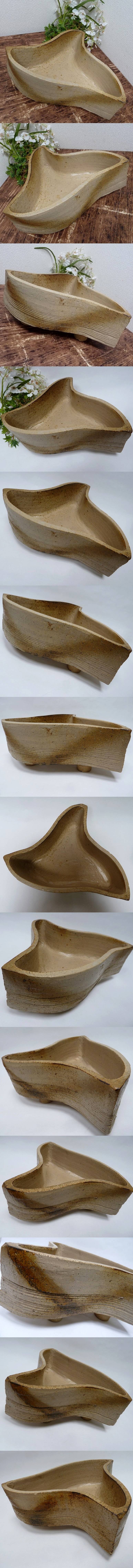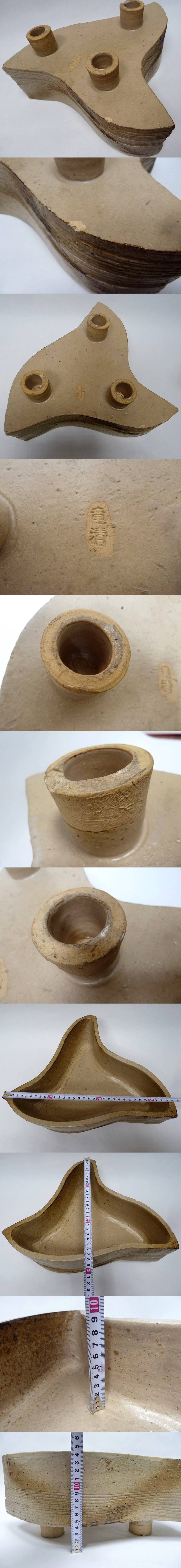 (☆BM)☆[SALE]水盤/花器(0719-④)竜清 変わり口 三角形 ヒトデ型 星型 陶器製 華道具 脚付き 三つ脚 花瓶 横幅35.5㎝ 日本伝統工芸