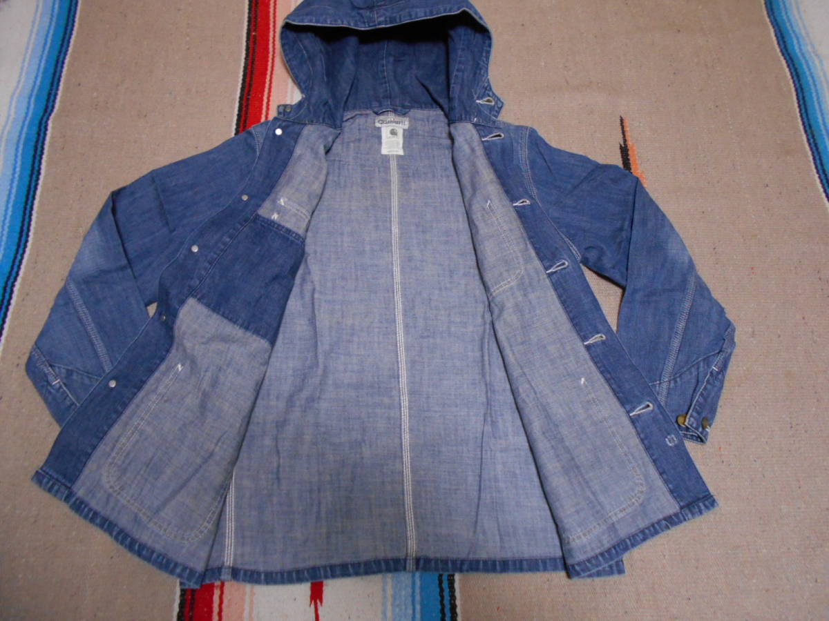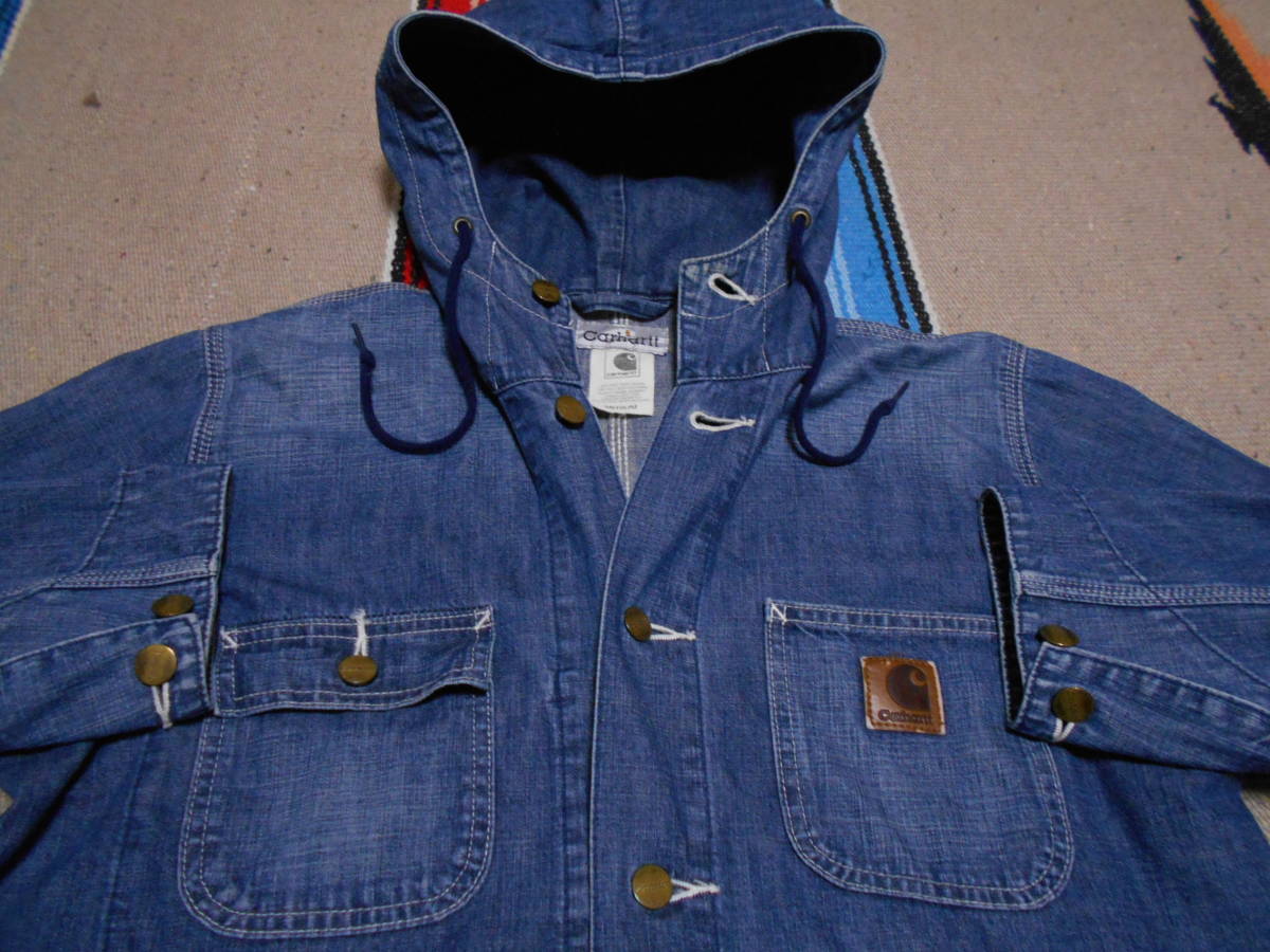 CARHARTT カバーオール特有のルーズ過ぎない絶妙なシルエット、実用的なポケット配置、被りやすいフード、良質なダンガリーズ素材、インディゴの深い縦色落ち感が極めて良いテイスト