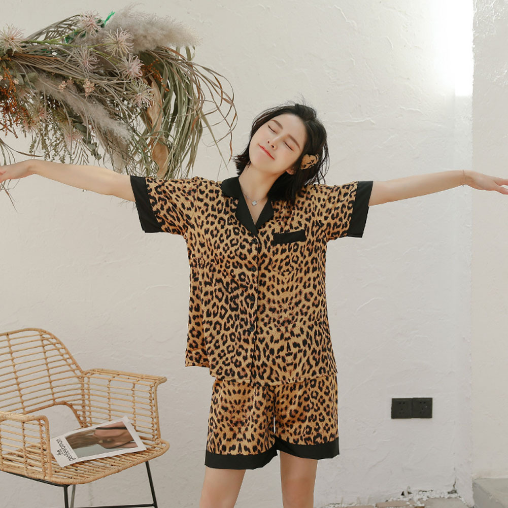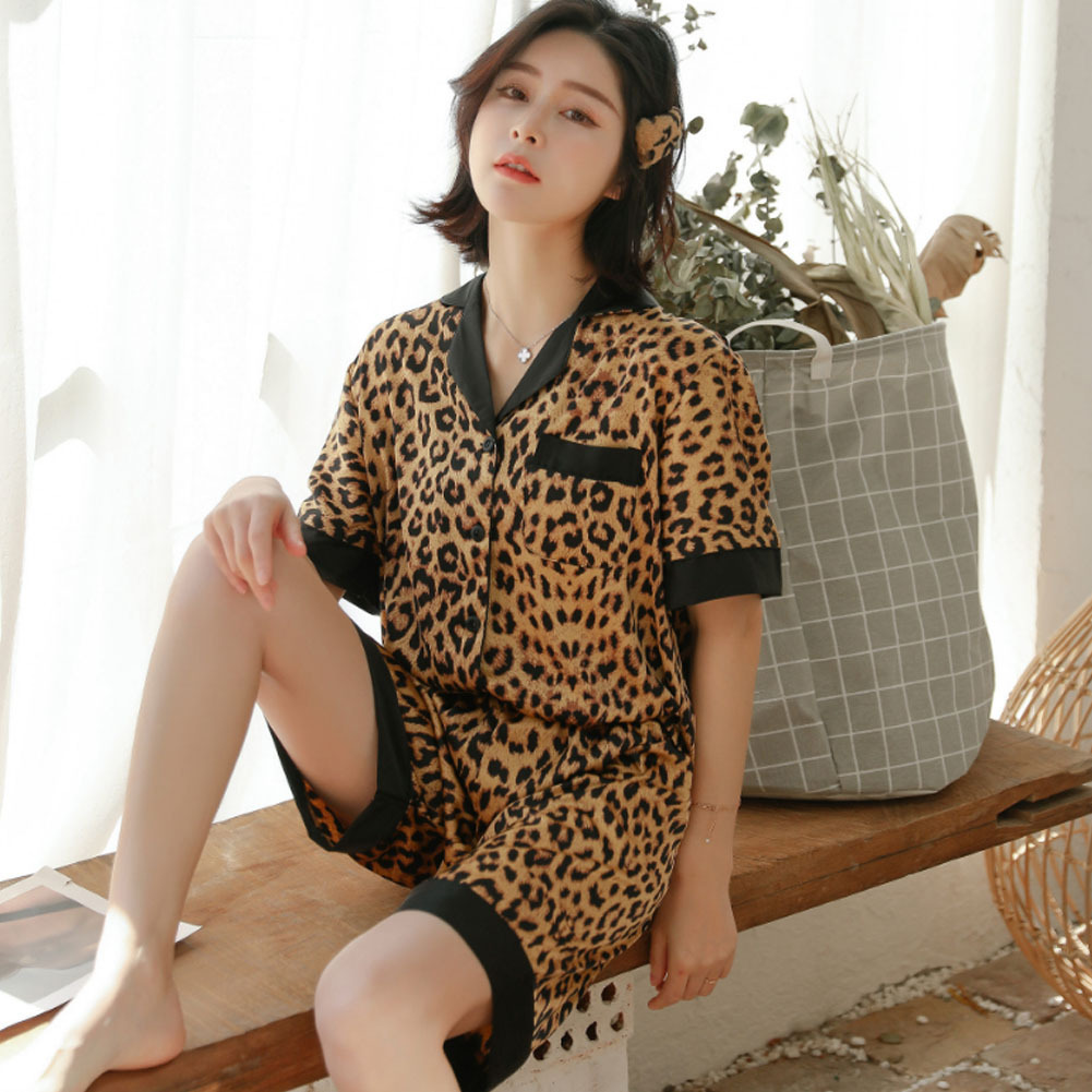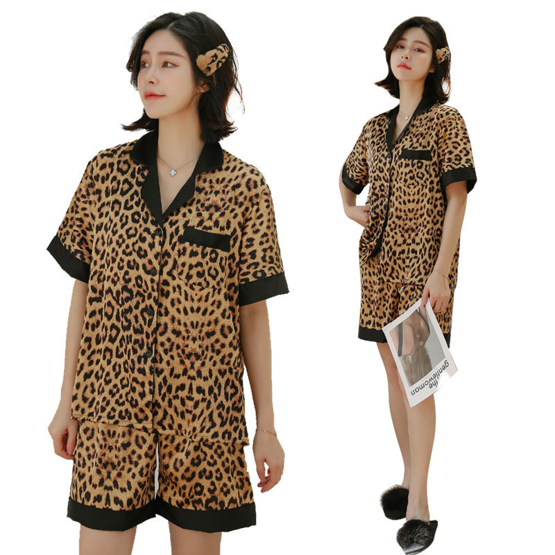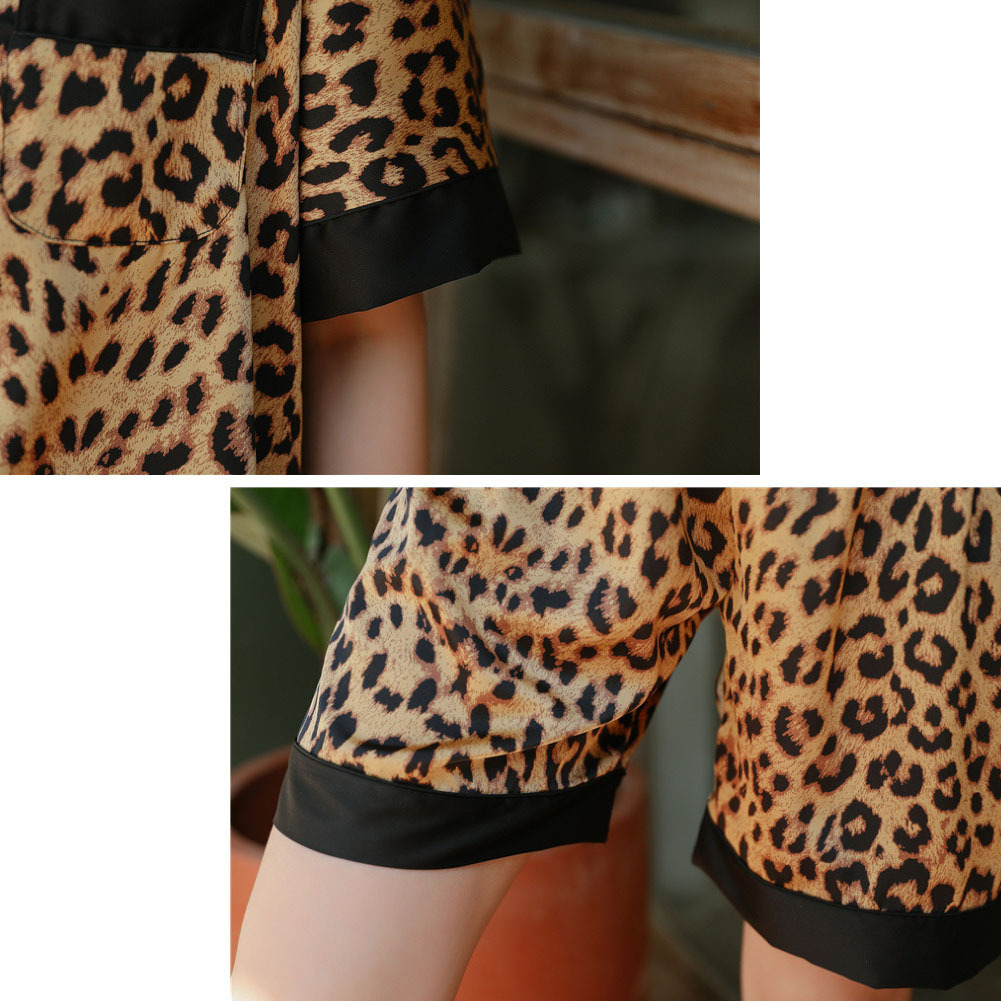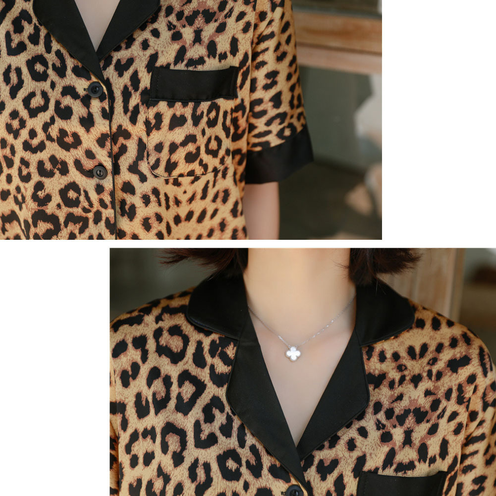 レディース パジャマ 半袖 ショットパンツ ヒョウ柄 シルク 夏 前開き ルームウェア パジャマセット 肌に優しい