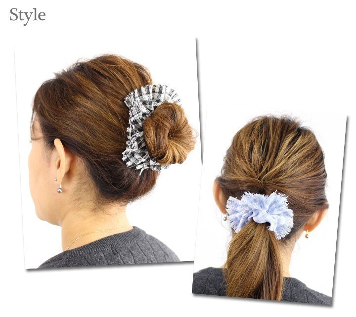 商品説明 | 定番☆シンプルチェック柄デザインのシュシュ。 白とのバイカラーで春夏にピッタリ!! 暑い夏も爽やかストライプで吹き飛ばそう!! |