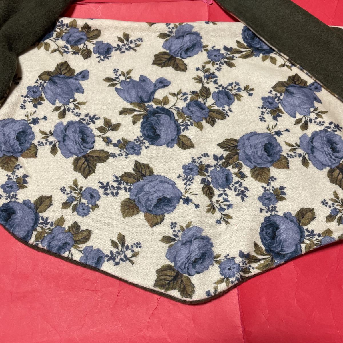 長さ約、170センチ.一番長い幅部分で、31センチぐらいです、裏側は、モスグリーンになります