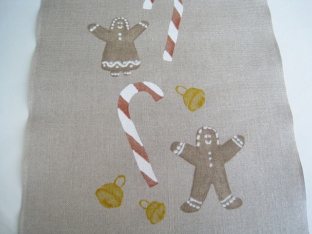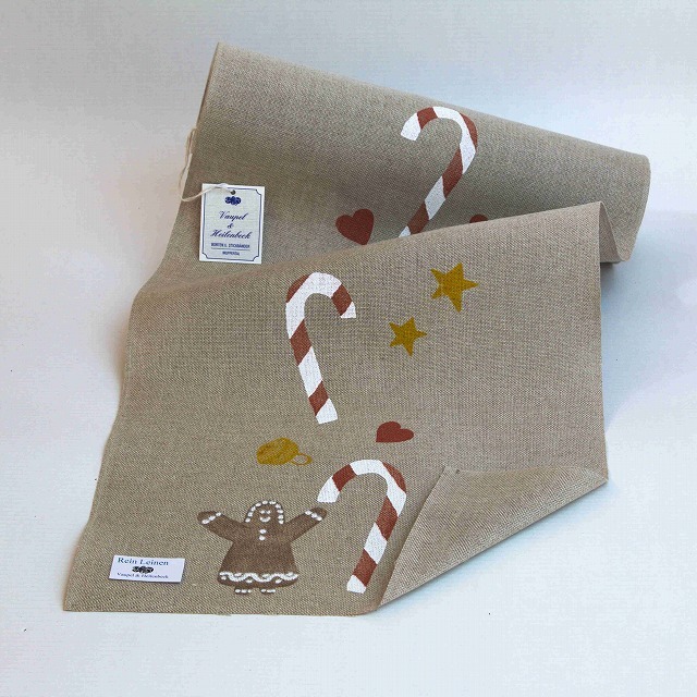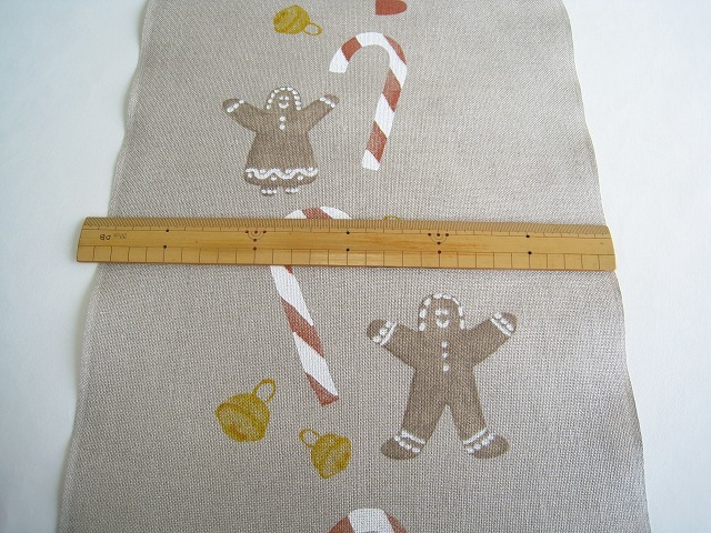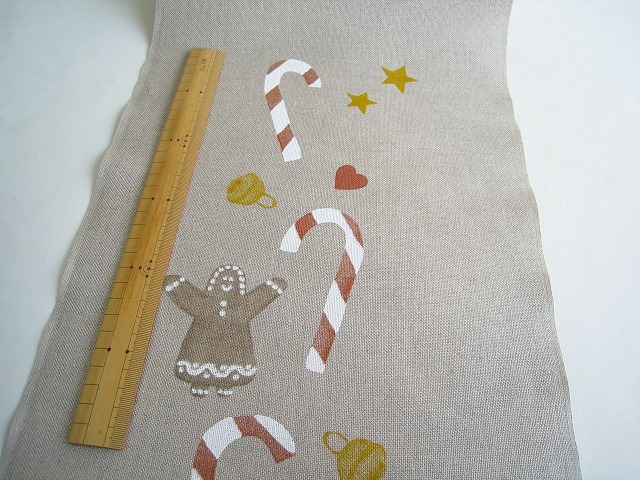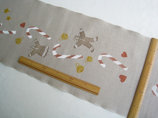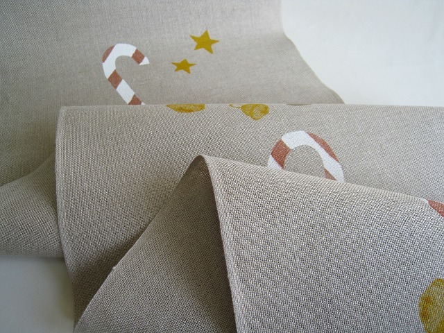 ドイツ製リネンバンド 幅28cm 刺繍用麻布 キャンディケイン柄 麻布 リネン生地