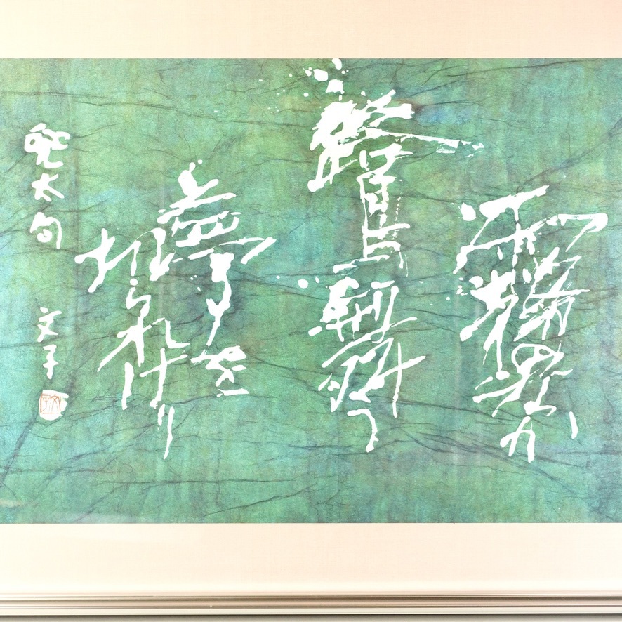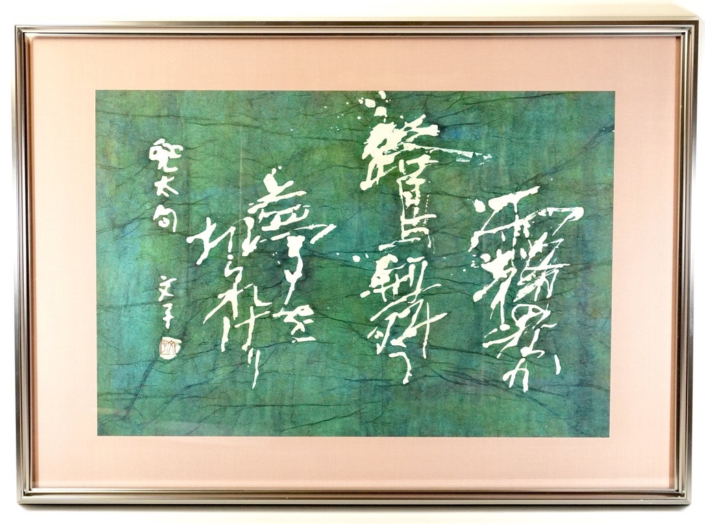 【ろうけつ染め書道家 長野文子 作品群】 額装/創玄展出品作品 紙本 詩文作者/金子兜太 俳句 幅82cm高さ60cm(62cm/41cm)