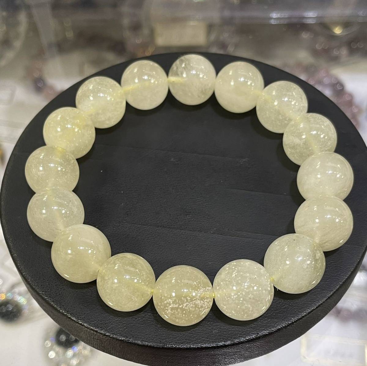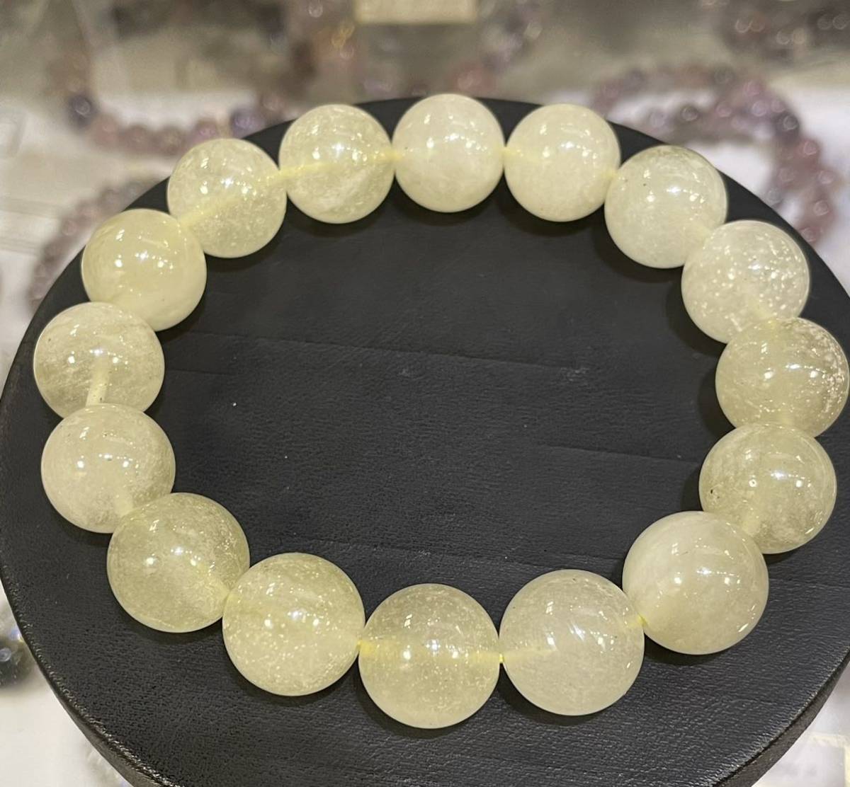 淡い黄色系が特徴であり、二酸化珪素(SiO2)の純度が98%で、黄緑、深緑、無色、乳白色等もあり気泡と内包物も良く含まれています。