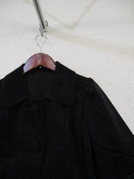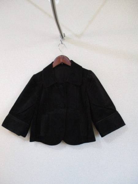 | 商品紹介 | 黒いコーデュロイ素材のジャケットです。 短めの丈で、袖も7分なのでスッキリした印象で着られます。 ボリュームのあるボトムスやワンピースと合わせるとカワイイです。 袖は軽いパフスリーブで袖口に向かって若干Aラインに広がりがあります。 《素材》 表地:綿100% 裏地・パイピング部分:ポリエステル100% |