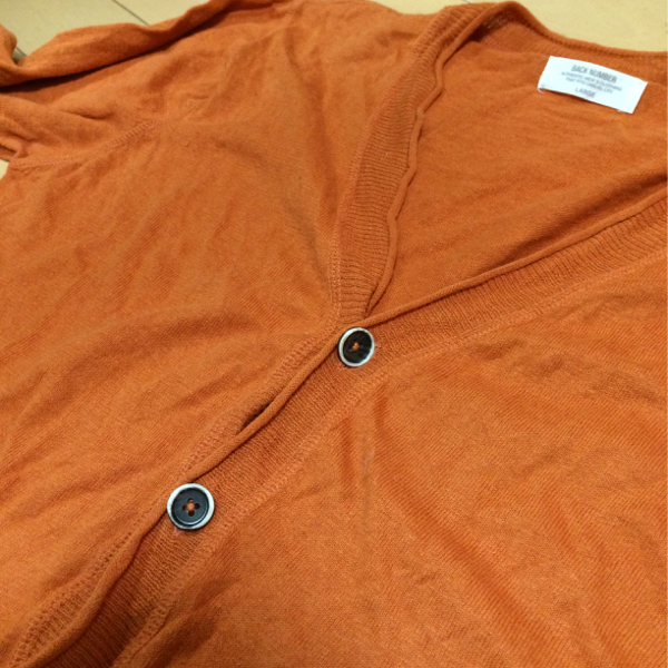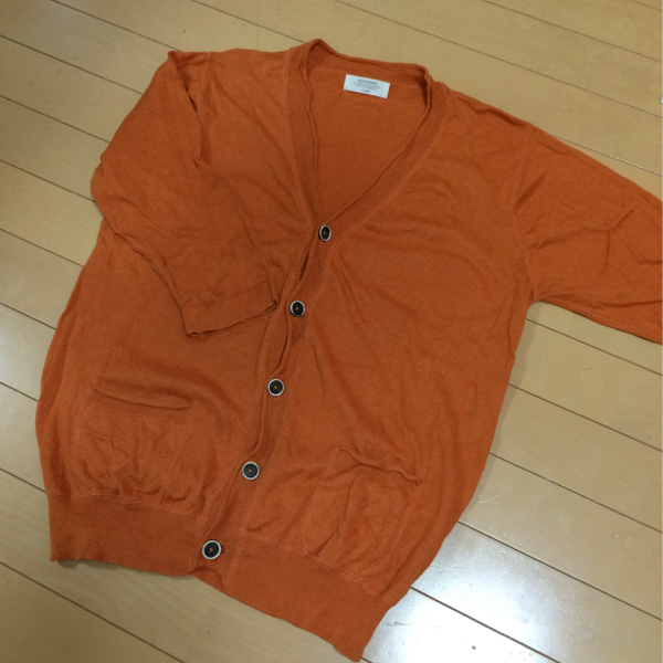◆リネン混なので夏まで使える七分袖カーディガン♪落ち使いた綺麗なオレンジ>