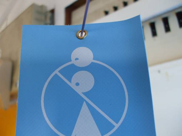 ●上部中央に直径5mm程度の穴及びハトメ加工を施しております。
