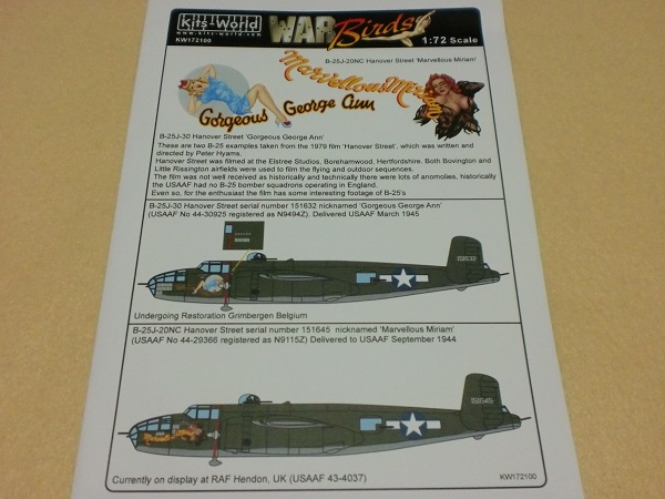 映画 ハノーバーストリ-ト Kits-World 100 キッツワールド デカール 1/72 B-25 ミッチェル 爆撃機 Hannover Street Mitchells B-25