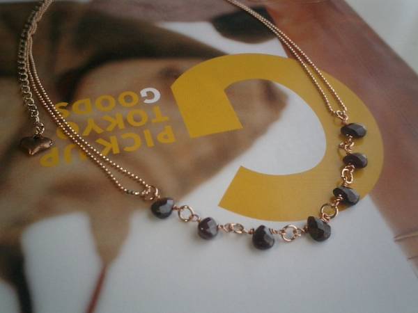ローマに旅して・・シリーズです♪ダークレッドの誘惑・・シックなガーネットのネックレスです♪ピンクゴールドのチェーンを合わせてキュートモダンな表情です♪フラットドロップカットのガーネットは6×9ミリ位です♪繊細なピンクゴールドのボールチェーンを合わせて秋のロマンチックしています♪長さは45センチ+アジャスター12センチで最長57センチ位です♪お揃いのブレスレットも出品しています♪シンプルで飽きのこないいつまでも着けられるデザインを考えて作りました!ハンドメイドをご理解頂いてノークレーム、ノーリターンでお願いします