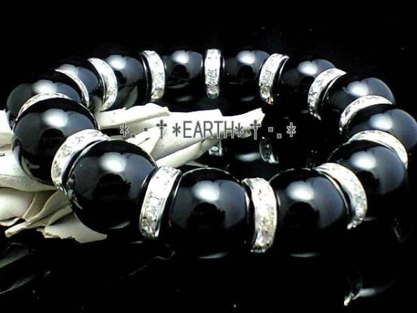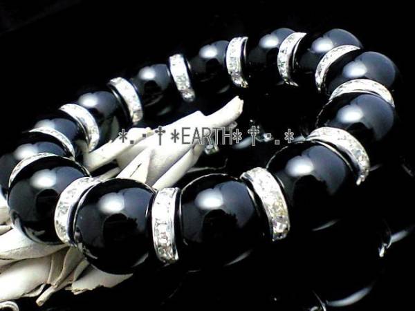 天然石★16ミリ黒瑪瑙AAA銀色ロンデル 数珠 | |
