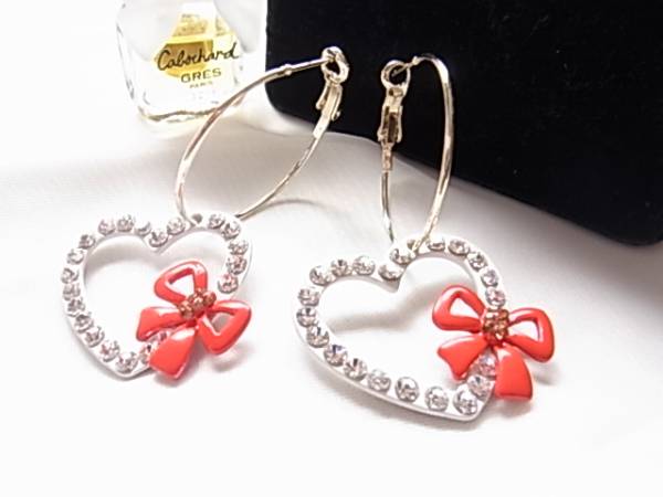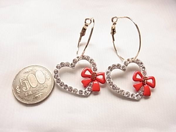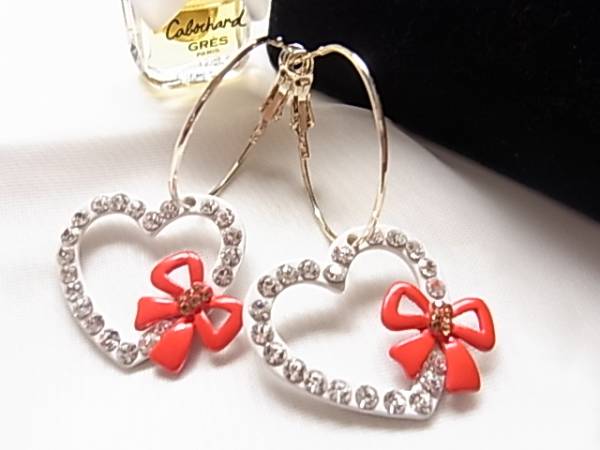 2way◎ハートにリボンにラインストーン女子力UPラブリーピアス☆++