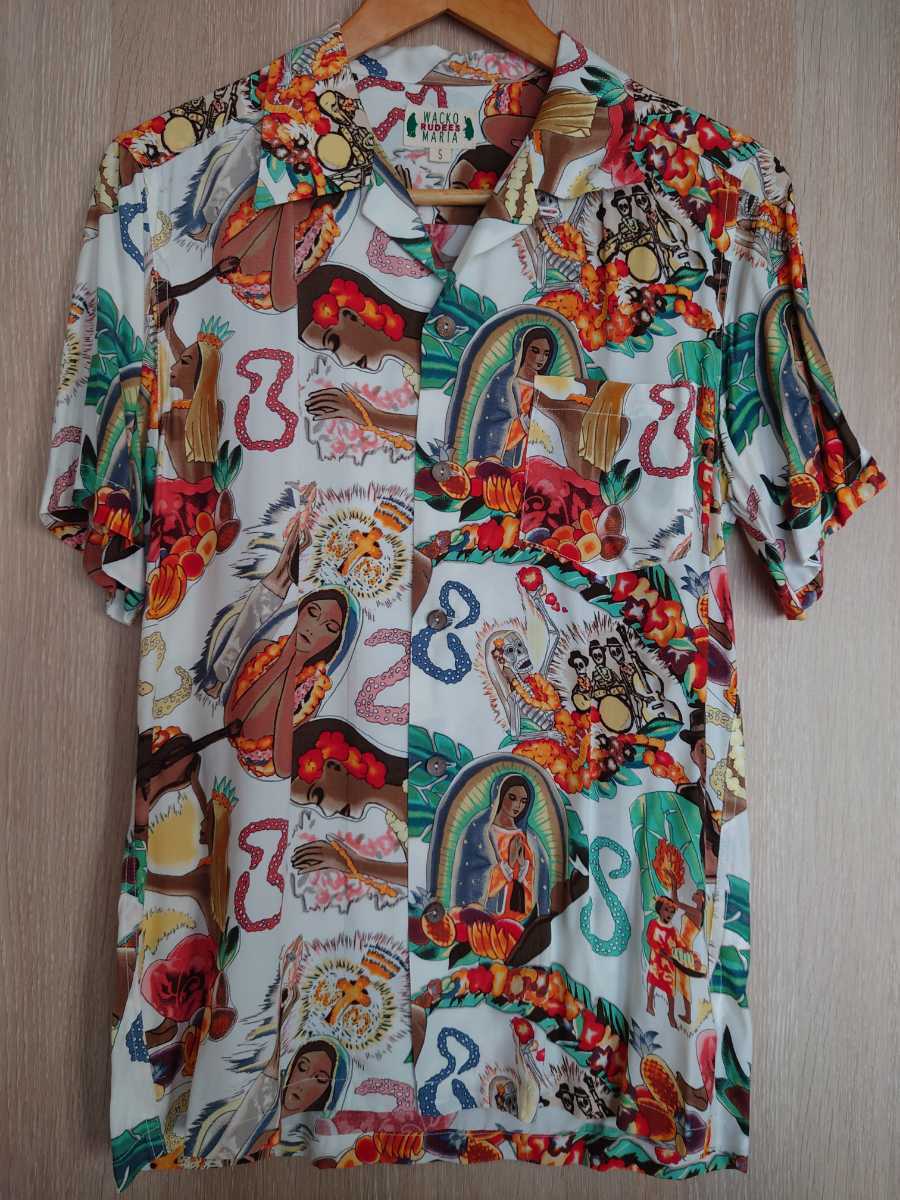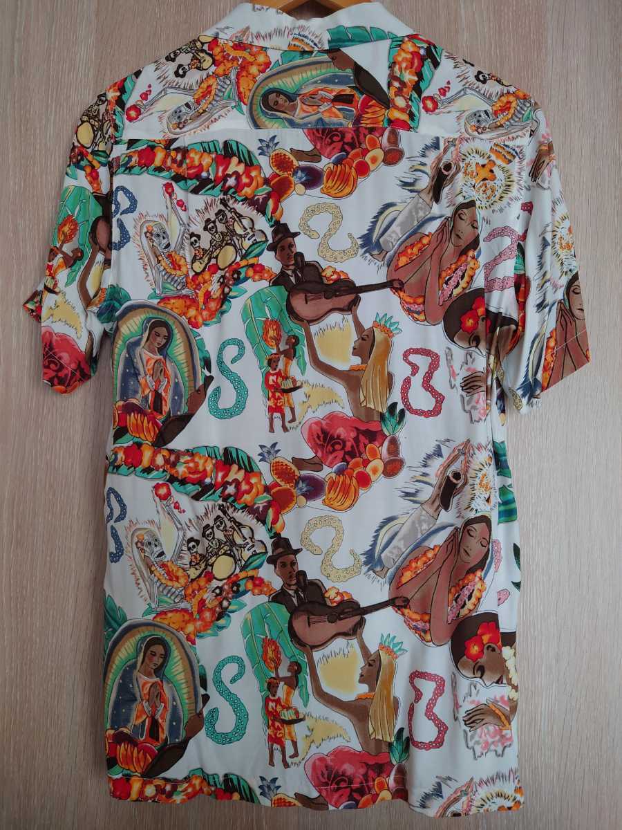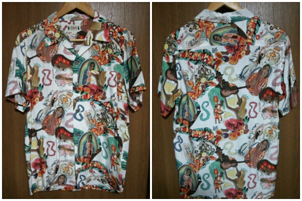 現行のワコマリアにはないテイストのデザインでハワイアンテイスト溢れる柄にブルースを奏でるミュージシャンやジャズを演奏するスカルが描かれています。