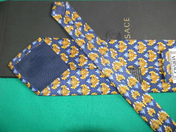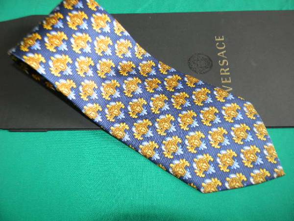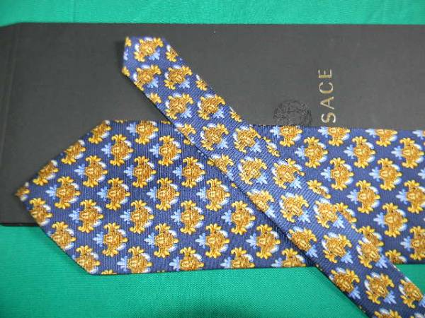 ヴェルサーチシルク100%ネクタイ(ネクタイ専用紙袋付き)です。ほとんど使用していないので、傷やほつれ、擦れ、汚れの全然無い、とても綺麗なネクタイです。大剣先は約9.5センチあります。一回でも使用したネクタイは全てクリーニングで清潔にしてから出品しています♪ネクタイ専用紙袋付きですので、プレゼント用にいかがでしょうか♪画像を良くご覧の上、ノークレームノーリターンで宜しくお願いいたします。
