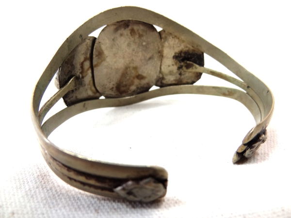 ビンテージ 希少 エスニック ネイティブ 民族 部族 ハンドメイド 石付 バングル カフ ブレスレット レア サイズ 調節可 珍品 アクセサリー