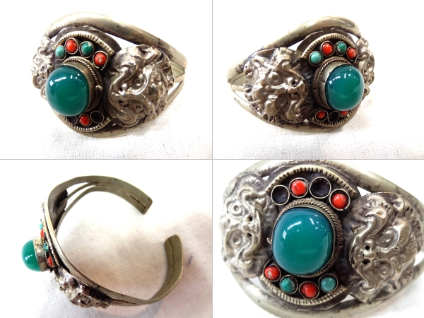市場にはほとんど出てこない部類です。詳細はわかりませんが,なにかしらの部族や民族たちのアクセサリーです。生き物のモチーフや石など魔除け的な意味があるのだと思います。素材は銀ではなくアルミやステンレスのような感じなので,重量もそれほどなく好きなサイズに絞ることが可能です。