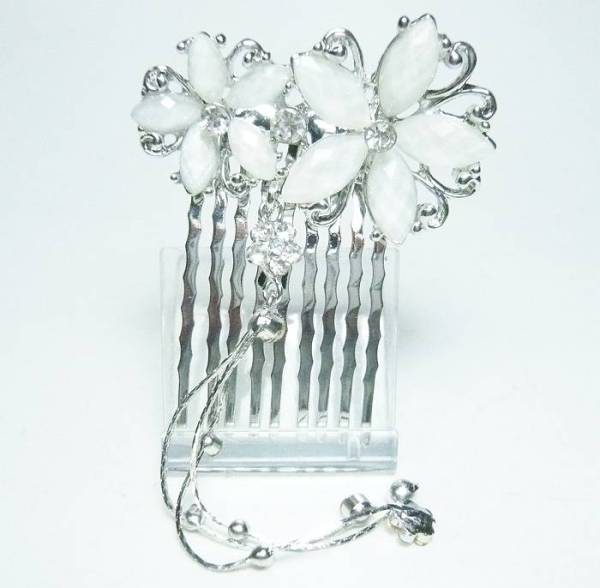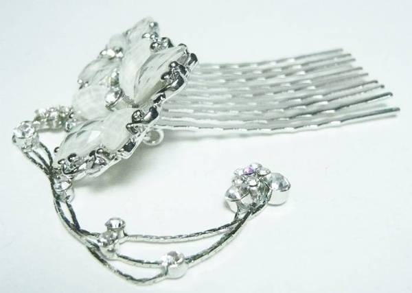 スゥィング チャーム付き 花ラインストーンコーム ロジューム