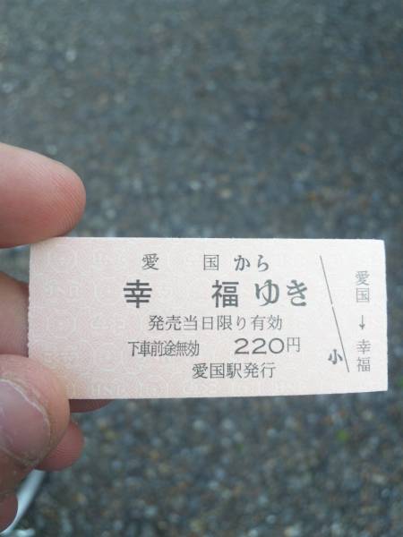 愛国から幸福ゆきのレプリカの硬券です。お支払いはかんたん決済でお願いします。普通郵便、簡易書留、特定記録、速達、のどれかでお送りします。送料は落札者様でお願いします。