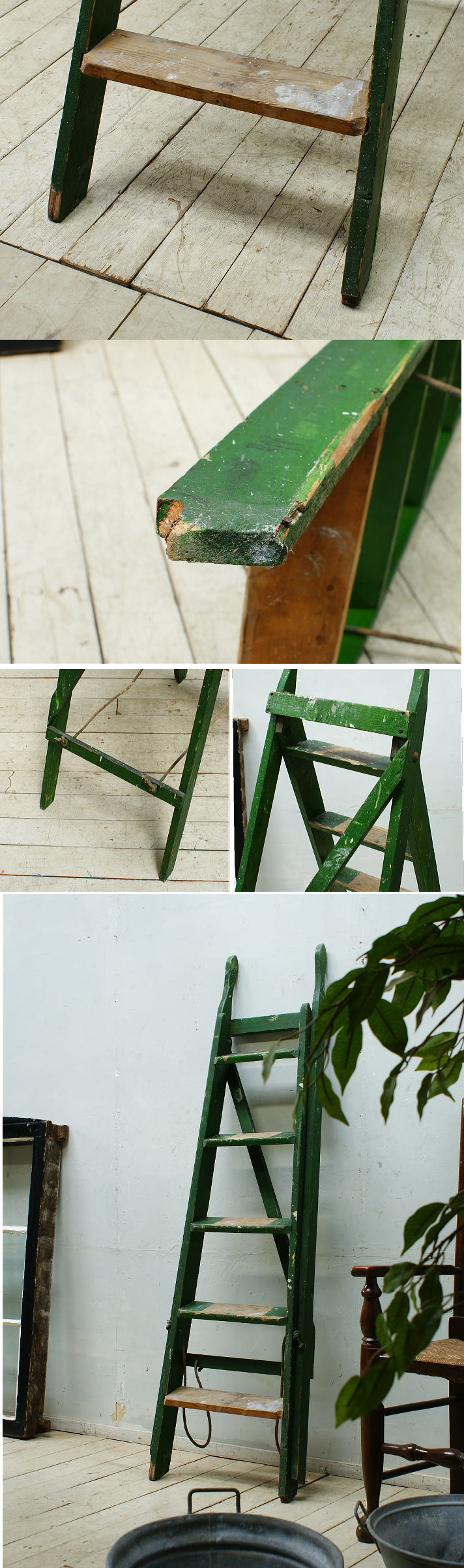 イギリスの蚤の市で見つけてきた古い、ペイントステップラダーです。