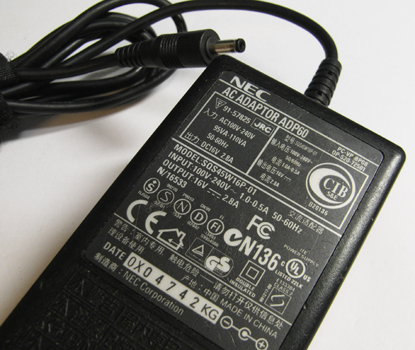 日本電気株式会社NEC純正大容量スイッチングACアダプターADP60中古品です。