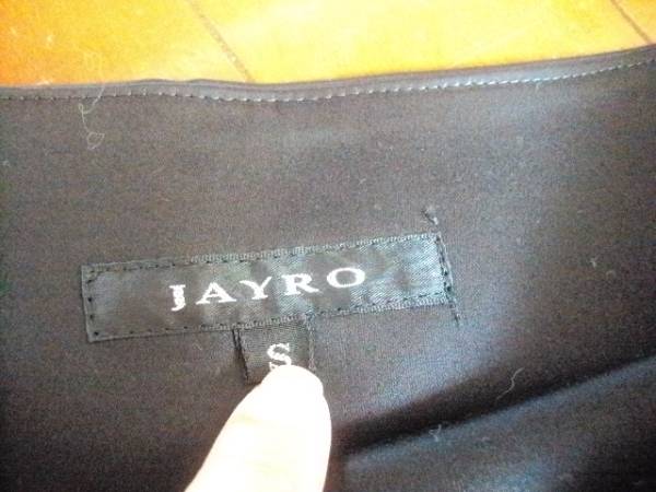 JAYROジャイロのスカートです。サイズはSです。お色はブラックです。平置きサイズは、丈57.5cm、ウエスト32cm位です。素材綿63%、ポリウレタン4%ポリエステル33%です。使用回数少ないです。使用品ですので神経質な方は御遠慮下さいね。ノークレームノーリターンでお願い致します。その他いろいろ出品していますので見て下さいね。必ず自己紹介もご覧くださいね