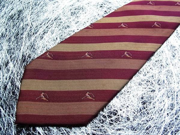 KB0529良品【スキー】ストライプ刺繍★ネクタイ★