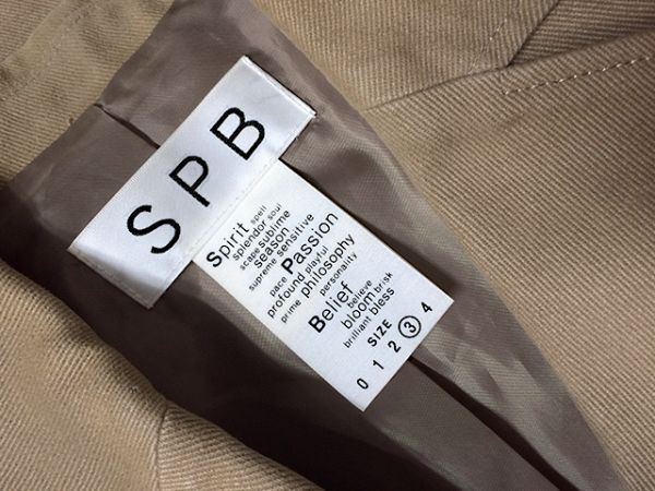 ワールド SPB ジャケットです。色はベージュ。◆表生地 綿100% 裏生地 ポリエステル100%◆サイズは3で着丈約67cm・肩幅約40cm・袖丈約57cm・身幅約43cmです。◆USEDです。少々の使用感は有りますが状態は良好です。◆
