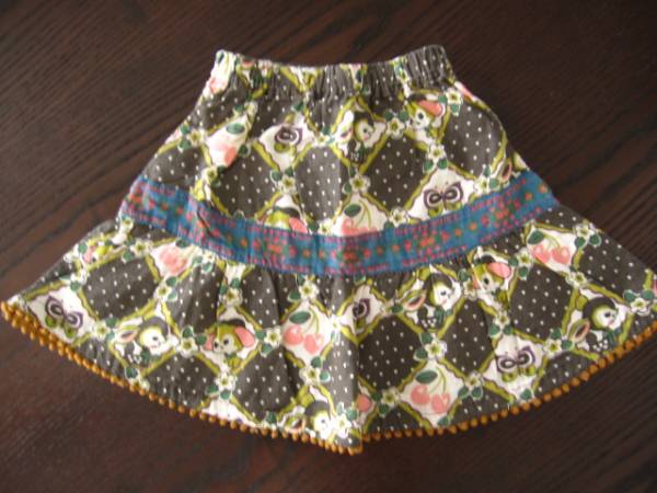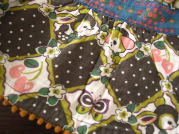 グラグラのレトロアニマル柄がとってもかわいらしいロング丈のスカートです☆裾のポンポンレースがかわいいですよ☆