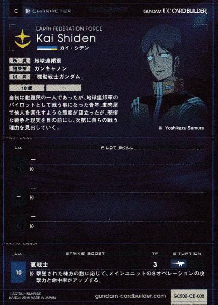 機動戦士ガンダムU.C.カードビルダー ロケテスト ロケテ 【カイ・シデン】です。
