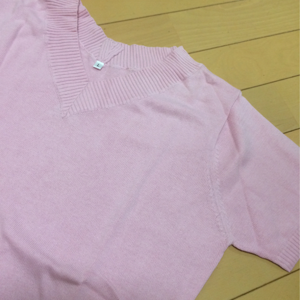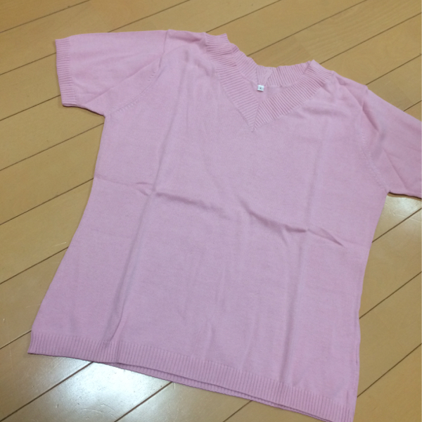 ◆浅いVネックなので一枚での着用可♪パフっぽいお袖が可愛い半袖ニット