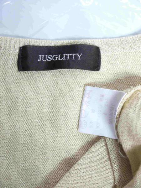 USED品正規品(アルベージュ)のジャスグリッティー(日本製)のポリエステル60%・綿40%のカーディガンです。