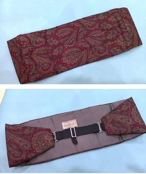 ●限定品 英国製  カマーバンド シルク100%★エンジ系⑪