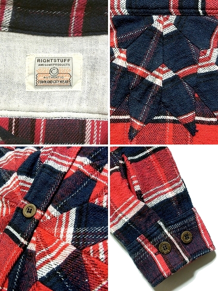RIGHTSTUFF ライトスタッフ FLASH キルトパッチワーク HEMP ヘンプ チェック ネルシャツ ジャケット Mサイズ