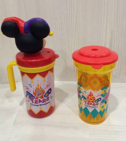ディズニーランド15周年ストロードリンクボトル、スーベニアタンブラー2点セットです。