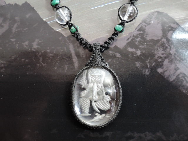 ★ヒマラヤンクリスタル★手彫りガネーシャ★+菩提樹★天然石ネックレスハンドメイド★ヒマラヤ産水晶彫刻カービングペンダント★kamesan