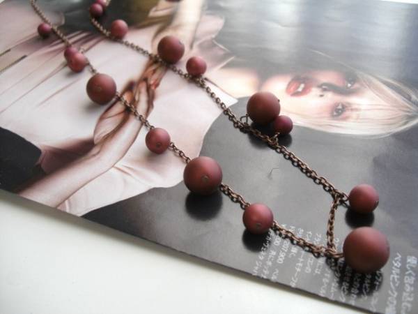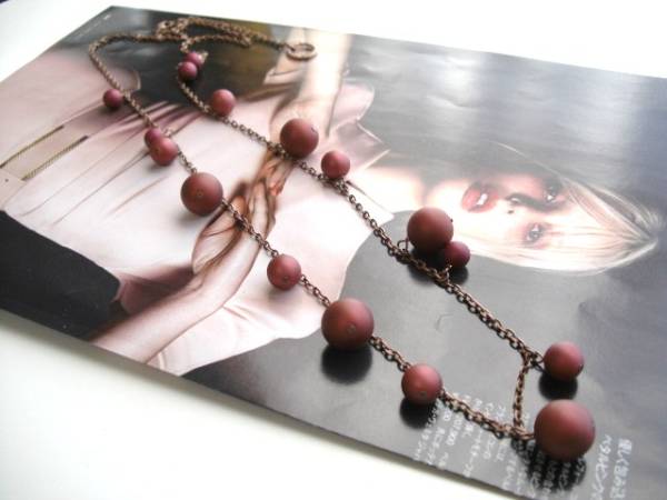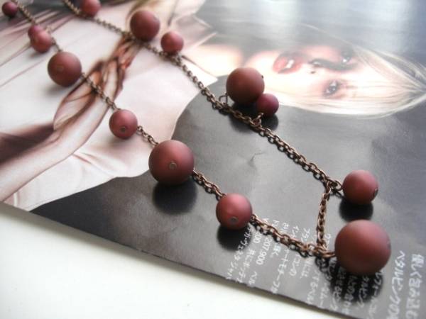 パンク・ガール・・シリーズです♪大人色の赤Ⅱ・・シックなダークレッドの樹脂パールのネックレスです♪軽い付け心地で楽しんでいただけます♪マッ トな深い赤のパールは8ミリから14ミリ位までの大きさ違いです♪ランダムに紡いでマニッシュな表情です♪長さは80センチ+アジャスター10センチで最長90センチ位です♪2連にされても素敵です♪お揃いのブレスレットも出品しています♪シンプルで飽きのこないいつまでも着けられる デザインを考えて作りました!ハンドメイドをご理解頂いてノークレーム、ノーリターンでお願いします